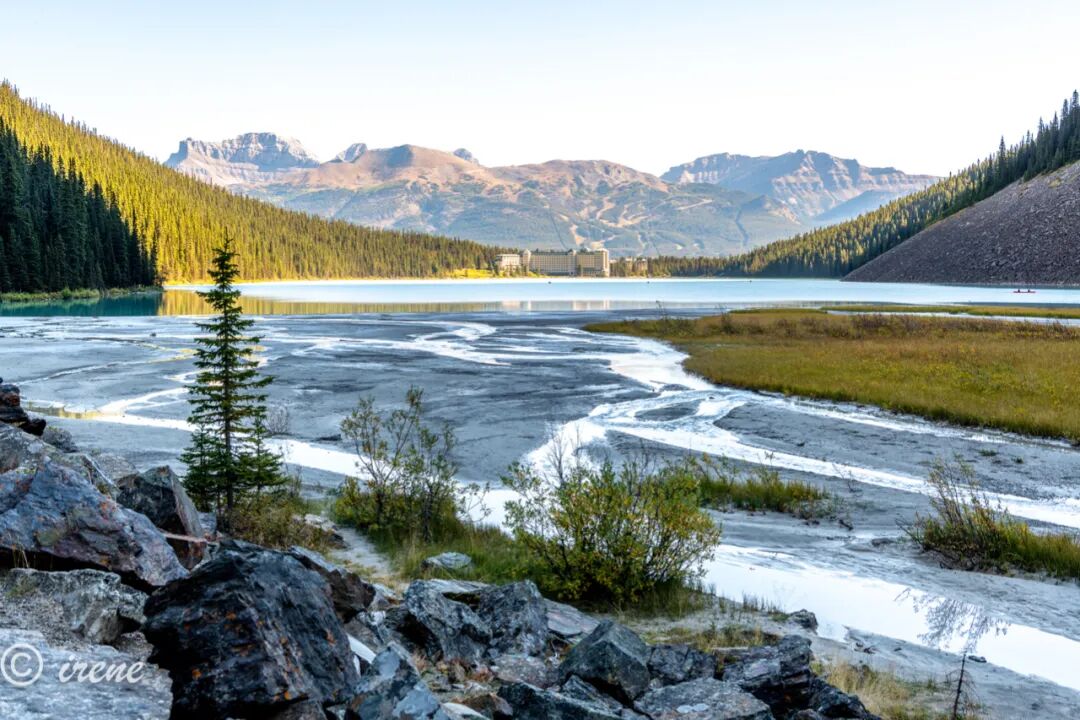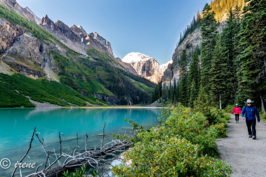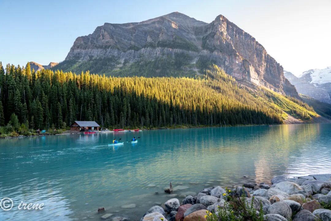 很快我们又下到了路易斯湖畔,夕阳下的路易斯湖沉静美好。