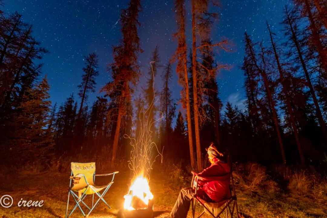今天是安了心的要看极光,燃起篝火,熊肯定是不敢近身了。天空清亮纯净,没有一丝光污染,没想到的是,极光还没有出来,大大的月亮到先出来了,把大地照的如同白昼,通常伸手不见五指的黑夜居然走路连头灯都免了,回来查了才知道,这天是9月2号即农历7月15满月啊。不竟暗暗叫苦,极光怕的就是光,这哪里还看得见啊。更没想到的是,7级的极光也不是吃素的,但见湖岸边的天空绿光闪现,翻卷而来,轰轰烈烈,把我们镇得目瞪口呆。