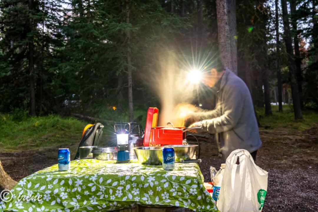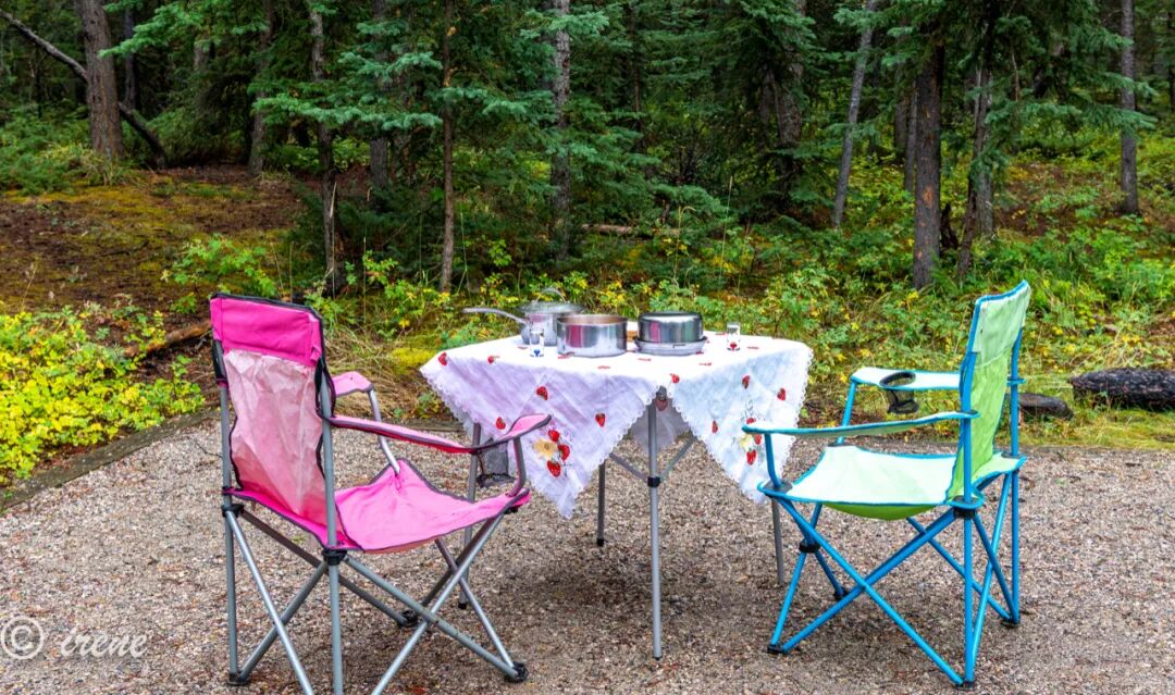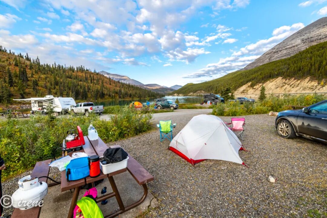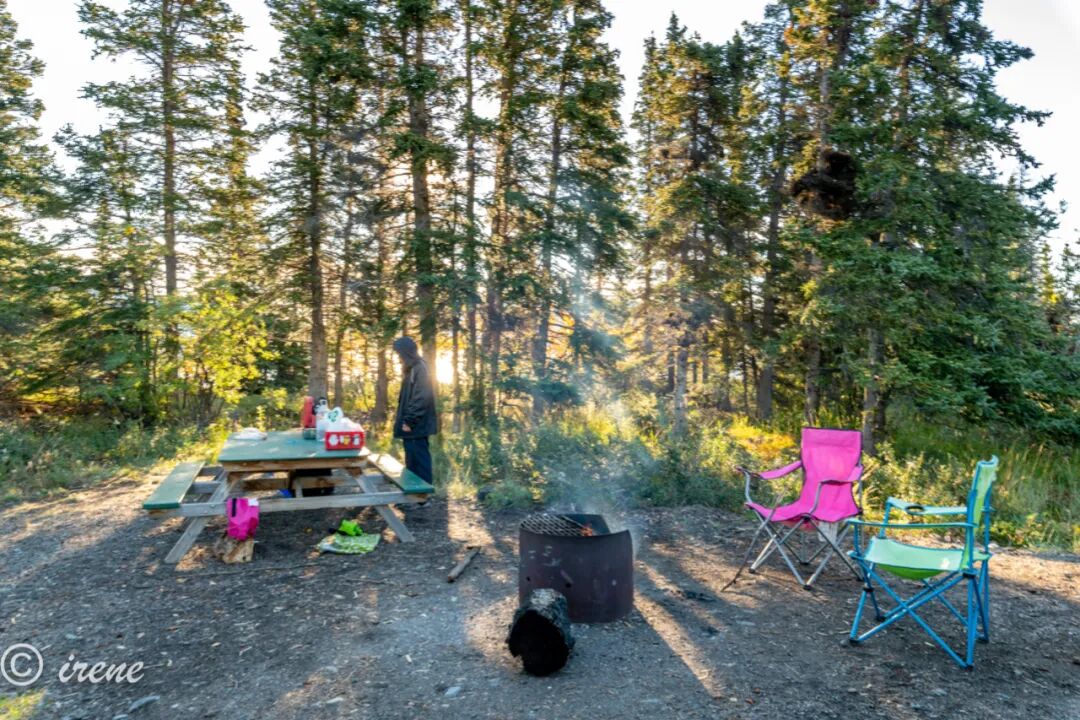 第一次看到用电网拦起来防熊的搭帐篷的区域,可想而知这个地方的熊实在太活跃,傍晚看到一个自行车队鱼贯而入,到里边搭帐篷去了。我们还是在外边的营地睡车吧。