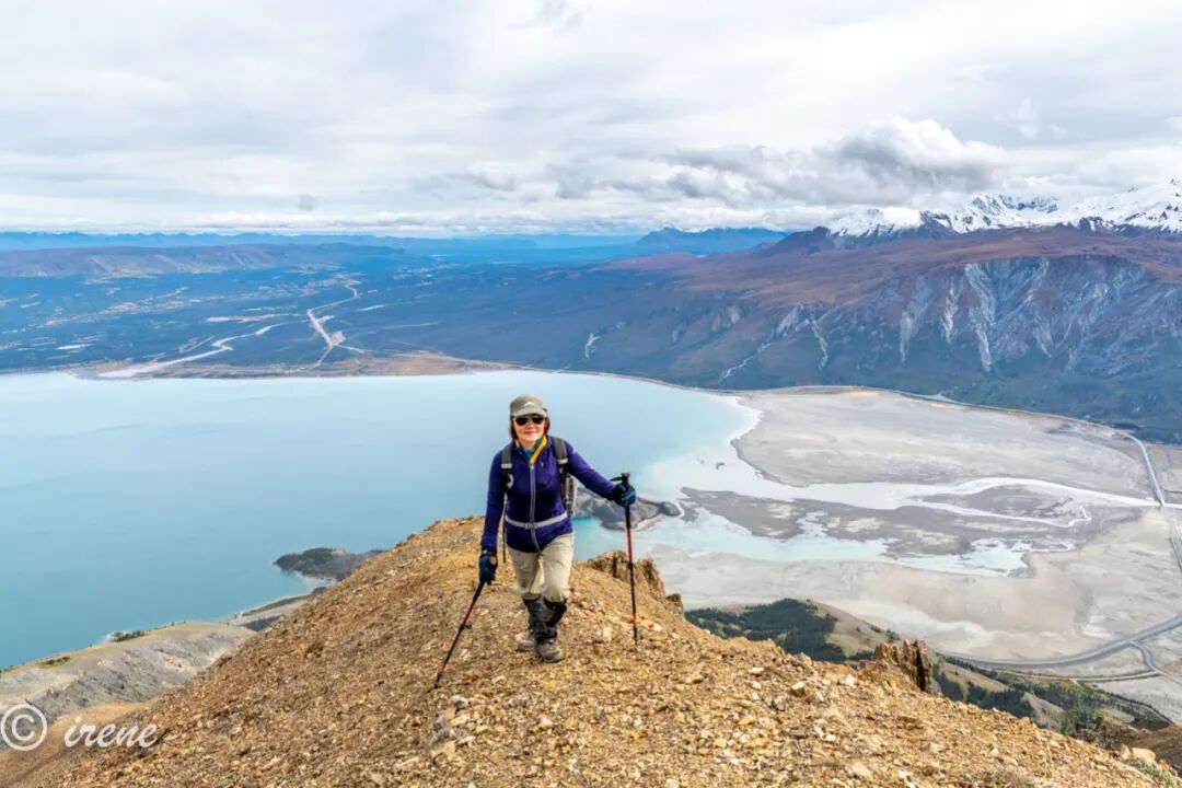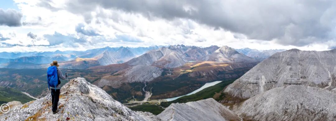 不容易的线路当然总是指向最美的景观,终于上到了顶上,三条山嵴线路汇聚于此,所有的方向一览无余,360度的美景每个角度都是不一样的景,湖泊、冰川、河流、雪山,放飞的感觉啊。