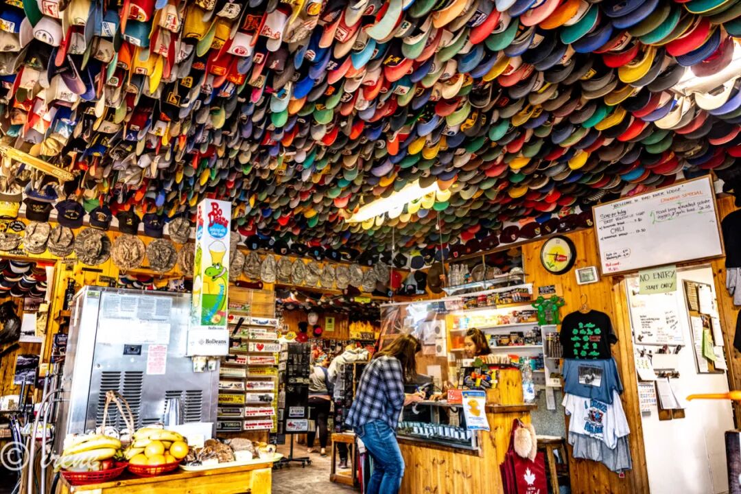Toad River Lodge,荒野中的小店,还有冰激淋,更特别的是用帽子装饰的天花板,是不是很有创意。