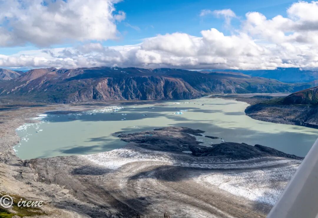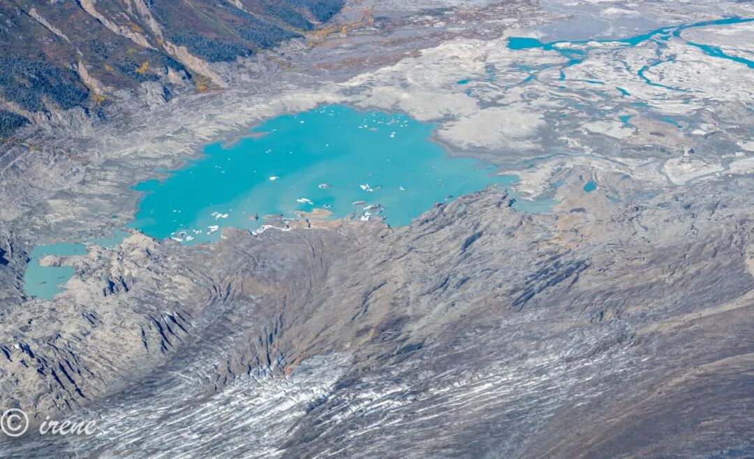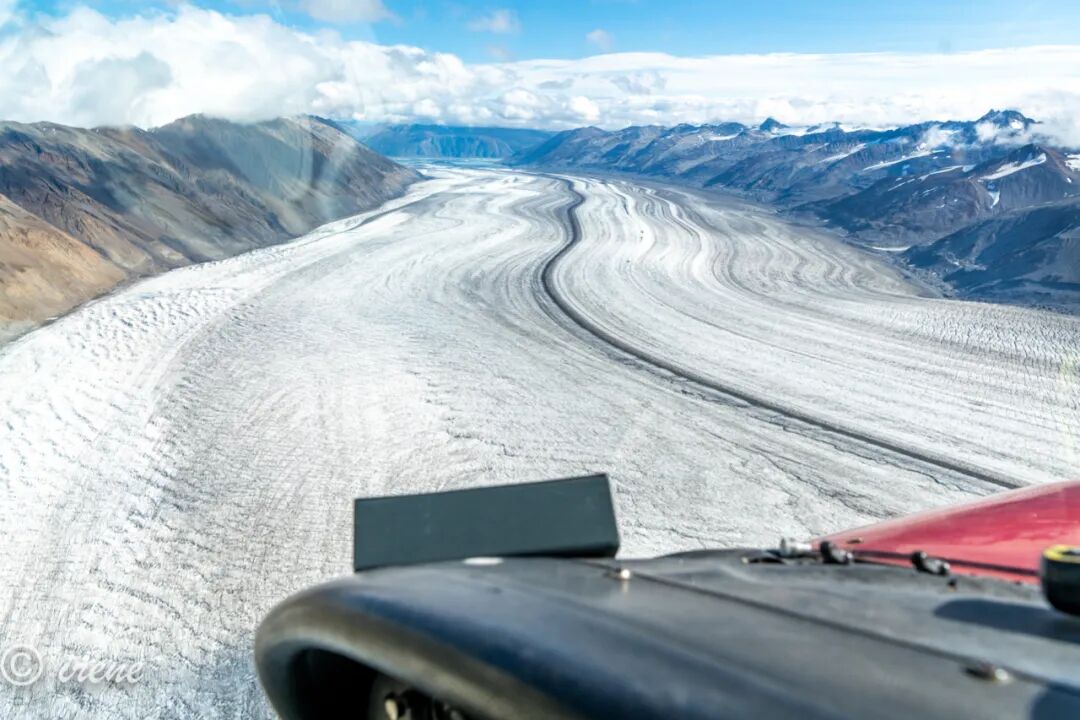 随着拔高上升,Kluane湖在脚下铺展,目极远方。