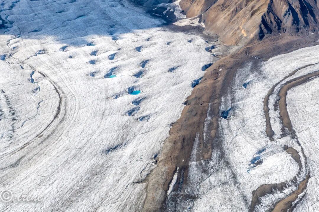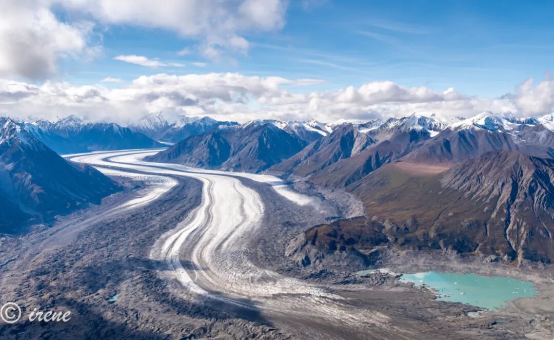 克卢恩(Kluane)是陆地上最极端的地区,位于育空西北方的高地上,加拿大最高峰Mt Logan(海拔5959米)的所在地,它也是北美的第二高峰,仅次于美国阿拉斯加的Denali(海拔6190米)。被11个5000米以上的山峰环绕,拥有除了极地以外陆地上最大的冰原,公园的区域80%以上被冰原覆盖,大小冰川似从天上倾泻而下,河流湖泊色彩斑澜遍布每一个角落,山峦雄浑壮丽,每一步都让人振奋,我们仿佛从一个梦幻走进了另一个。