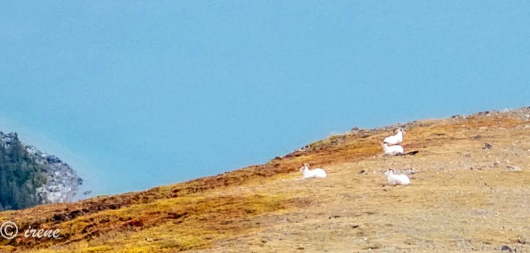 走上了第一个山嵴,看见了远处悠闲的大白羊了吗?在这呢