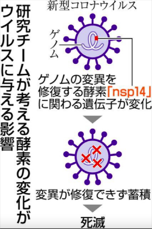 “nsp14”变异对病毒产生的影响 图自:日本共同社
