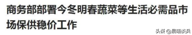 商务部一则鼓励大家储存生活必需品的通知,引发了网络上关于台海战争临近的猜想。11月1号,商务部印发了“关于做好今冬明春蔬菜等生活必需品市场保供稳价工作”的通知。通知称,鼓励每个家庭根据需要,储存一定数量的(肉类、蔬菜)等生活必需品,以满足日常生活和“突发情况”的需要。由于最近台海形势紧张,该通知一经发布,就被一些人解读称,这是要为打仗做准备吗,要打湾湾了吗,这是在做战前动员吗?