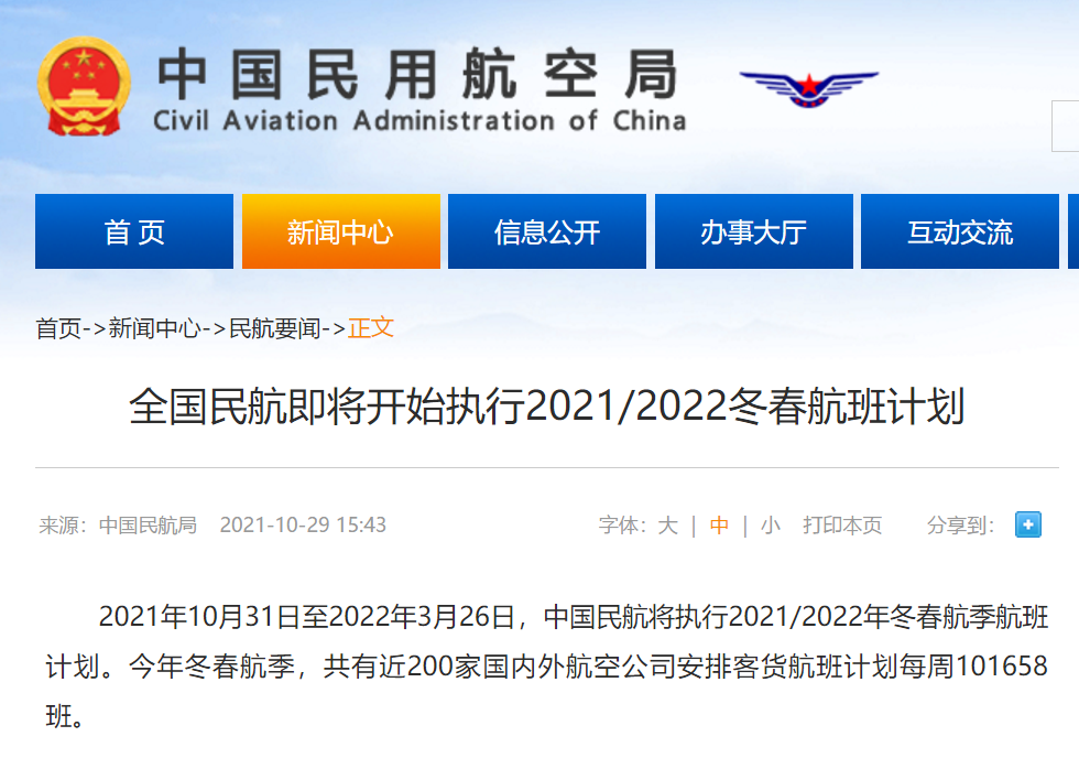 根据中国民航局新计划表述,此次调整,在国际航线航班方面,国内外航空公司共计划安排国际客货运航班每周6172班,同比2020/2021年冬春航季增长21.3%。其中,客运航班每周408班,同比减少21.1%;货运(含客改货)航班每周5764班,同比增长28.1%。国内19家航空公司计划每周安排客运航班228班,通航34个国家的39个城市;国外61家航空公司计划每周安排客运航班180班,通航47个国家的56个城市。