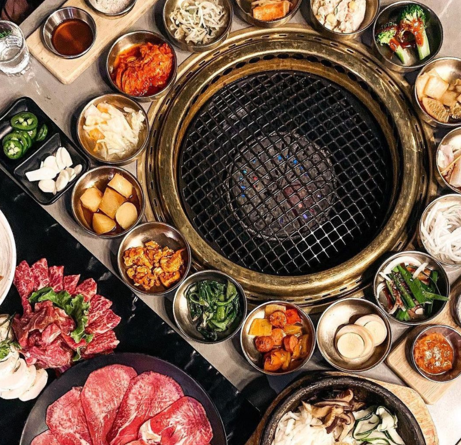 温哥华性价比超高的网红烤肉店,一上来就提供15道免费小菜,还能无限续。调料、生菜和米饭也全是免费的。