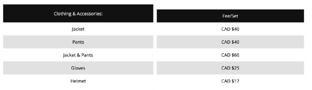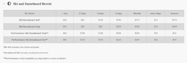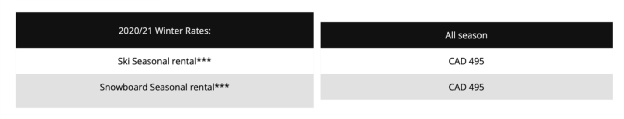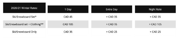 是温哥华雪具租赁价格最低的一家店铺,价格如下: