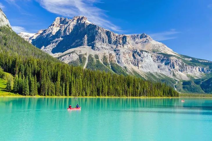 当你看到照片中的碧绿色调,应该不难猜到翡翠湖是如何得名的。翡翠湖的水来自周边山上的积雪,夹带着粉状的石灰石,使湖水呈现出壮观的翡翠色。