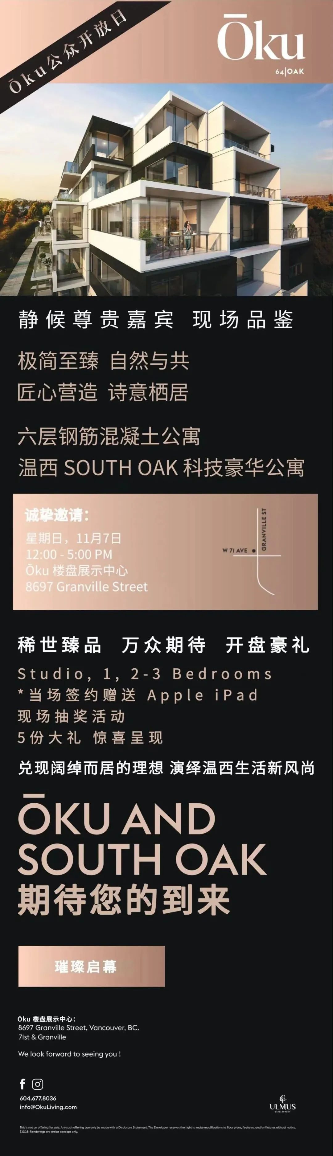 OKU销售中心地址:8697 Granville Street. Vancouver. V6P 5A3