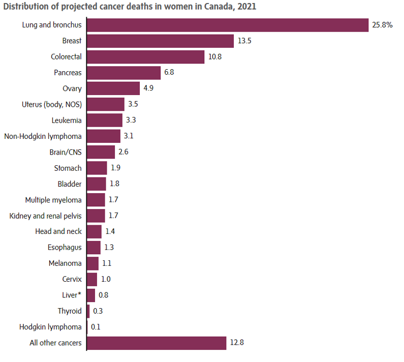 癌症是加拿大的第一杀手,根据 2021 年加拿大癌症统计报告,预计约有五分之二的人一生中会被诊断出患有某种形式的癌症,四分之一的人预计会死于癌症.