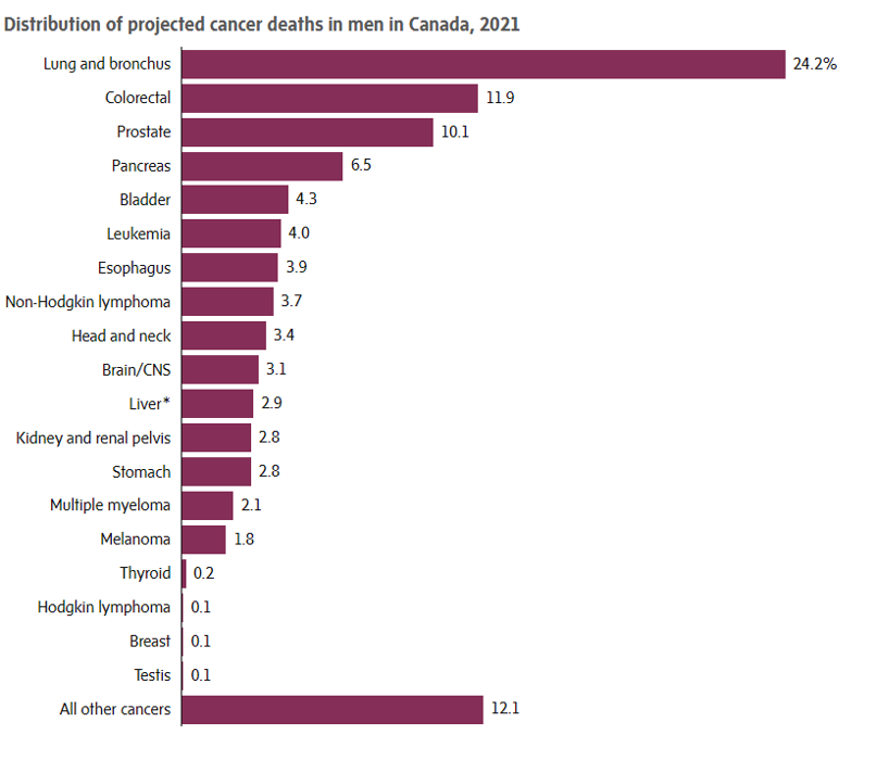 加拿大的前列腺癌死亡率自 1995 年达到顶峰以来下降了 50%。 尽管如此,预计今年将占男性所有新癌症病例的约五分之一(24,000),约 4,500 名男性将死于前列腺癌。大约八分之一的男性在一生中会被诊断出患有前列腺癌。