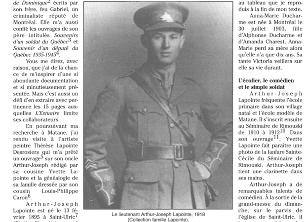 图源:The Globe and MailArthur-Joseph Lapointe 来自魁北克一个叫 Rivière Blanche 的小村庄。尽管他的父母和许多法裔加拿大人一样,反对加拿大参战,也反对儿子入伍,Lapointe 还是决定报名参加第一次世界大战。