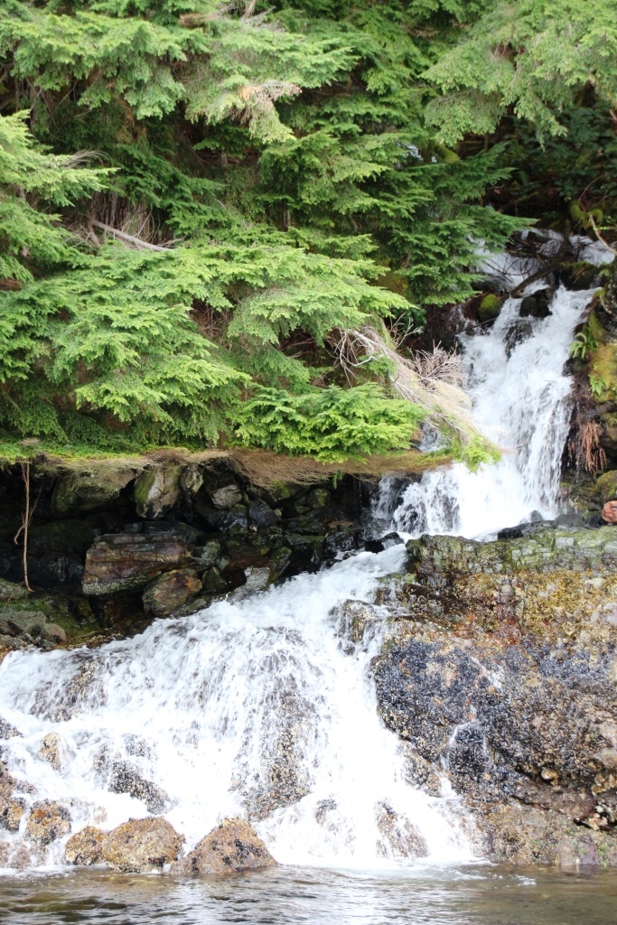 下面这张瀑布叫做SodaCreek(苏打溪,原因是溪流冲进海里形成大量泡沫),其所在的地方是原住民男孩进行成年礼的地方,他们要从悬崖上跳入水中并潜水若干时间才算合格: