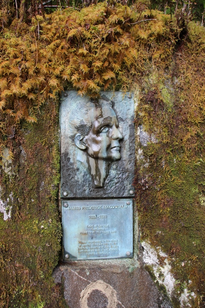 码头和一些设施依然依靠民间慈善团体进行维护和建设,加拿大人的义工精神是深入社会的价值观之一。这是路易莎公主峡湾省立公园的大功臣JamesMacDonald的纪念牌,小小的,嵌在瀑布旁的岩石上:
