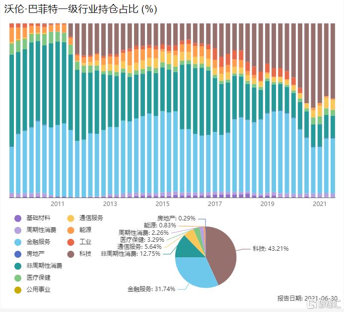 一直以来,巴菲特重点投资的都是跟美传统经济相关的金融、能源、消费等周期行业龙头,少有创新科技和商业模式的新龙头,也直到近几年才稍微配置了新科技的企业,但也为数很少。