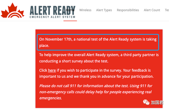 而Alert Ready官网已经发出通知,11月17日本周三将进行一次全国性测试。