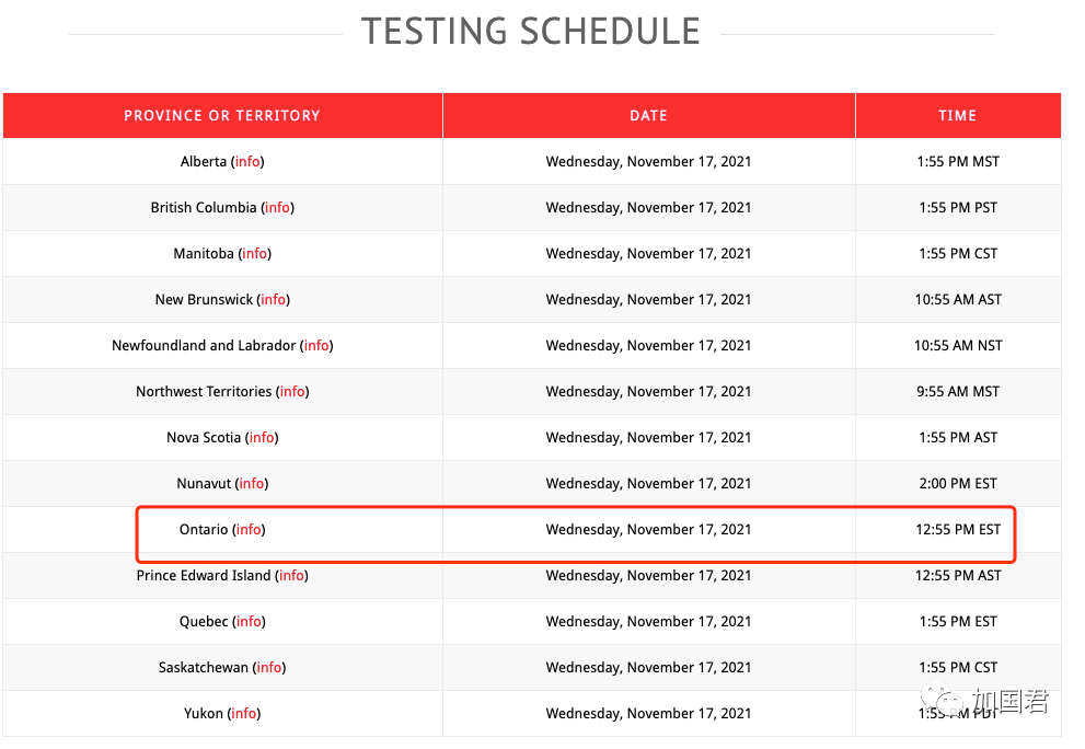 根据Alert Ready官网公布的时间表,各个省份的测试时间有所不同。