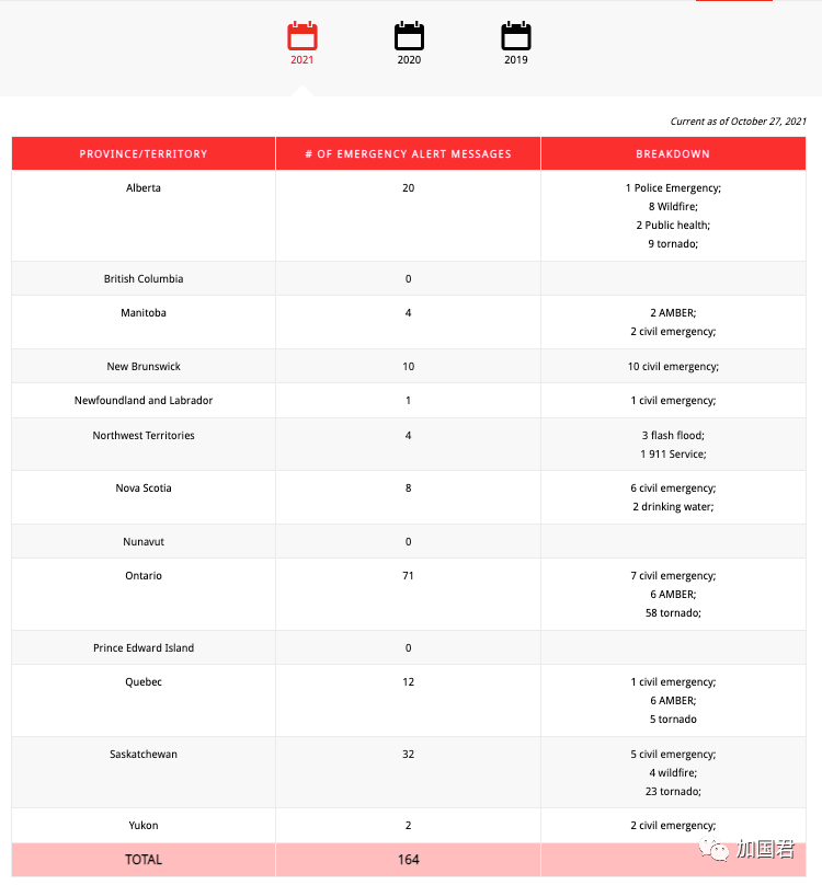 2021年今年至今已经发出160多次紧急警报,其中安省71次,大部分是龙卷风。