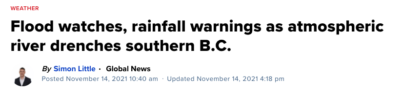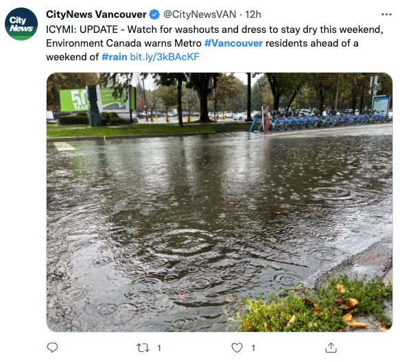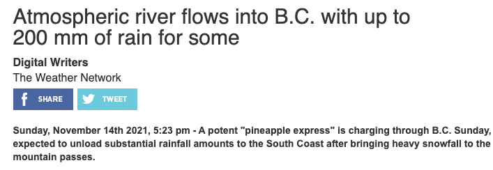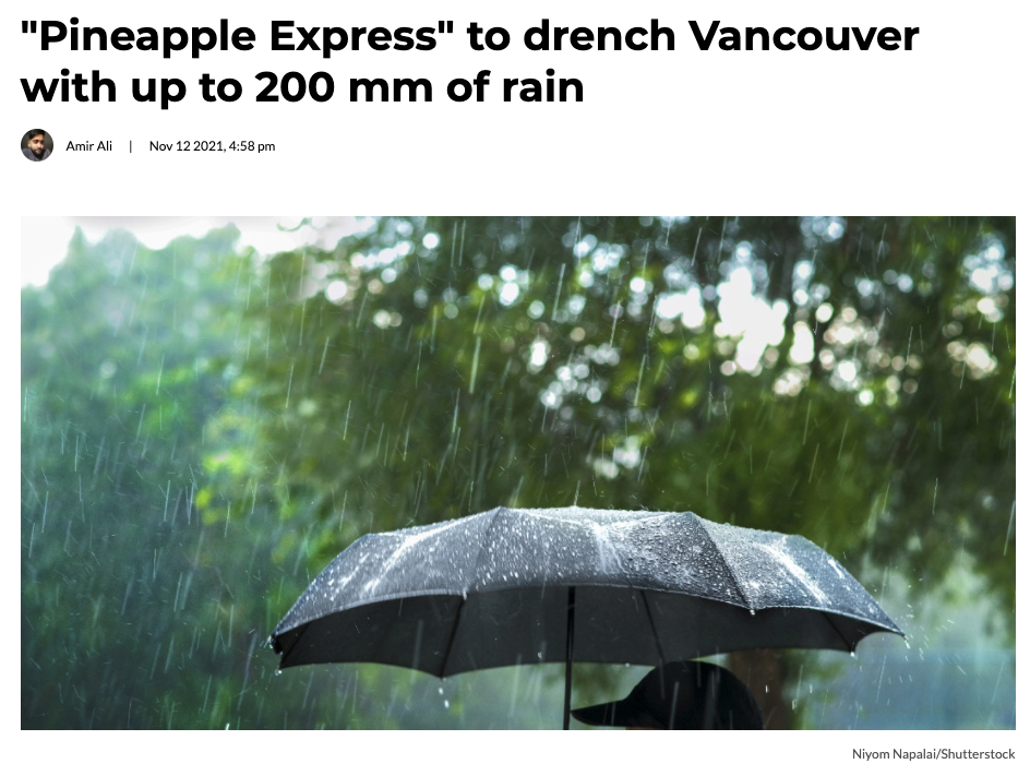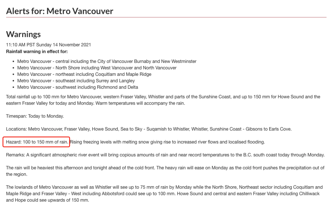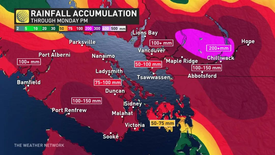 如今,100-200毫米的大暴雨正在持续肆虐BC——