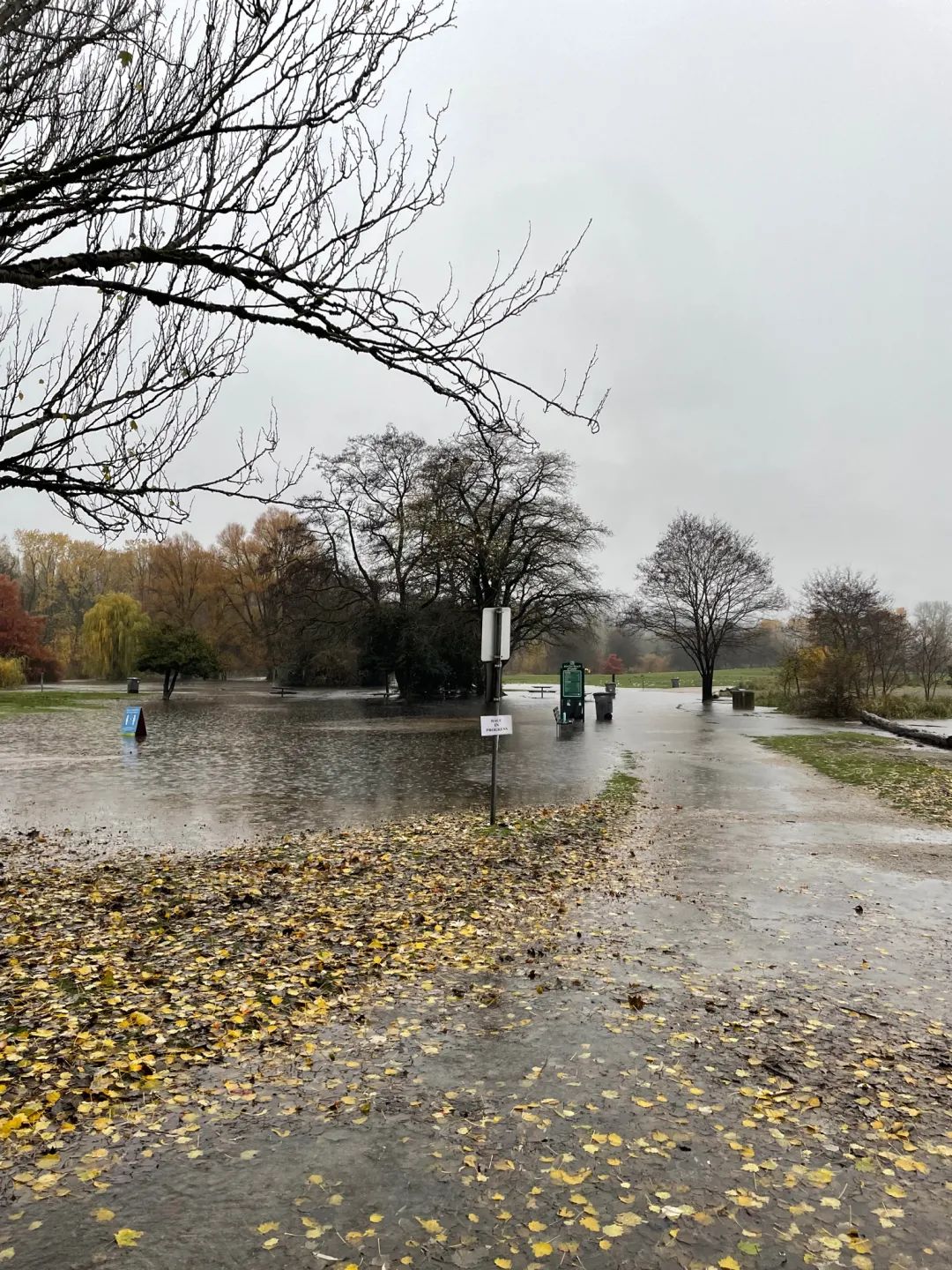 温哥华最美景点史丹利公园这一次可遭殃了,没人想到,公园里竟然还能被雨浇出一个“新的湖”来!