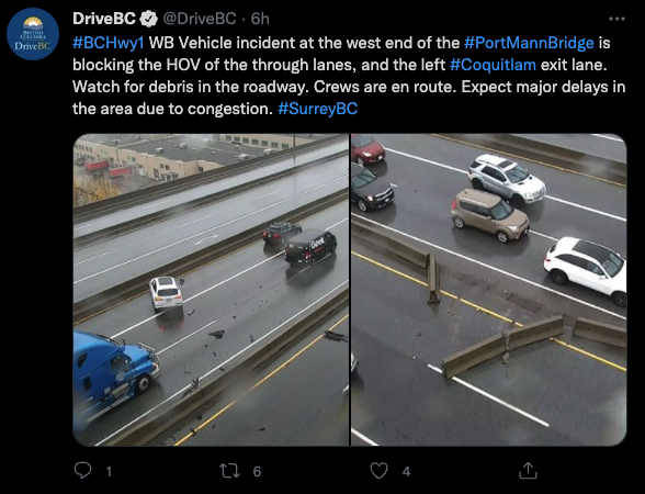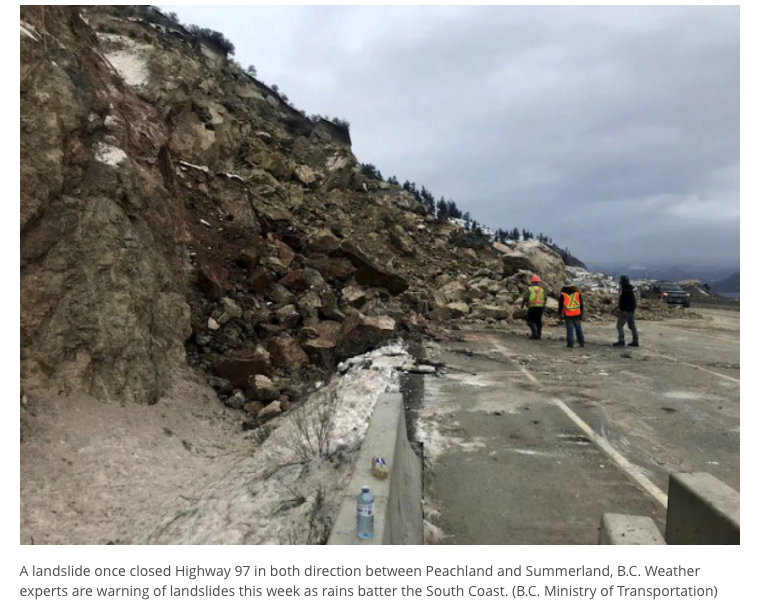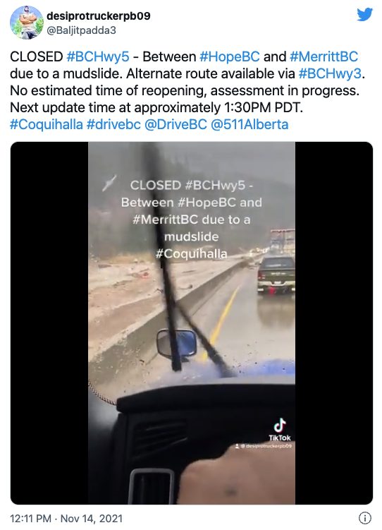 Drive BC连发数条推特,如今BC省多条公路因为遭遇了恶劣的泥石流,已经被封路!