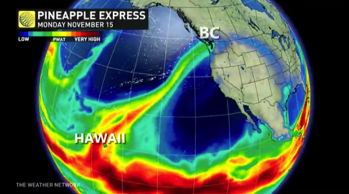 看看这气象图,这场大暴雨可以说是精准投放BC省了: