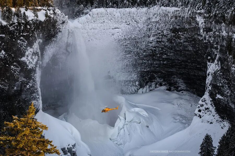 赫尔姆肯瀑布位于BC省威尔斯格雷省立公园内,高141米,是加拿大第四高的瀑布,水从挖空的悬崖中溢出。
