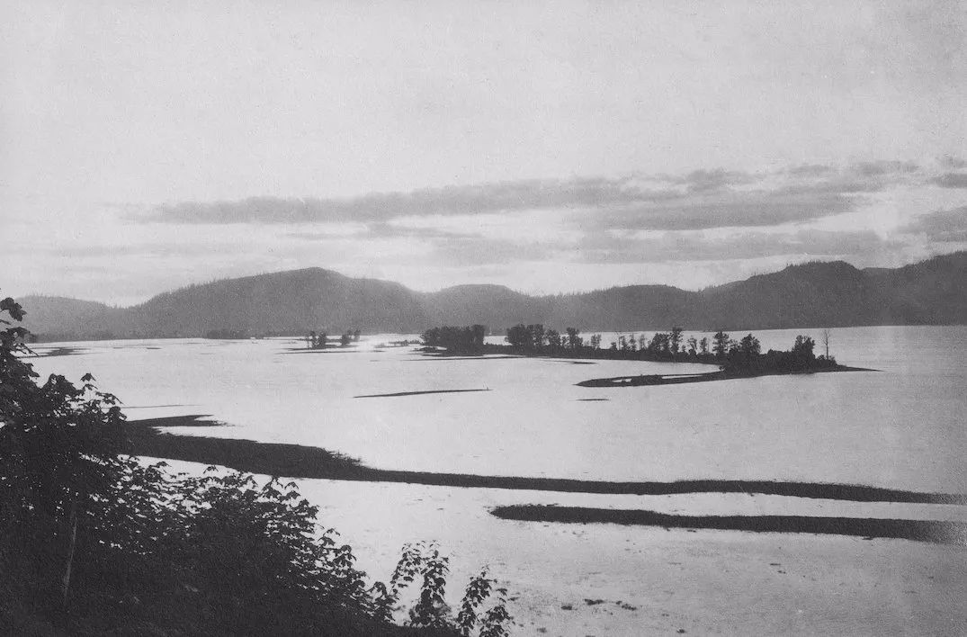根据文件记载,大约100年前,蓝色虚线区域内的134平方公里被称为Sumas Lake,当年大概是这个样子。