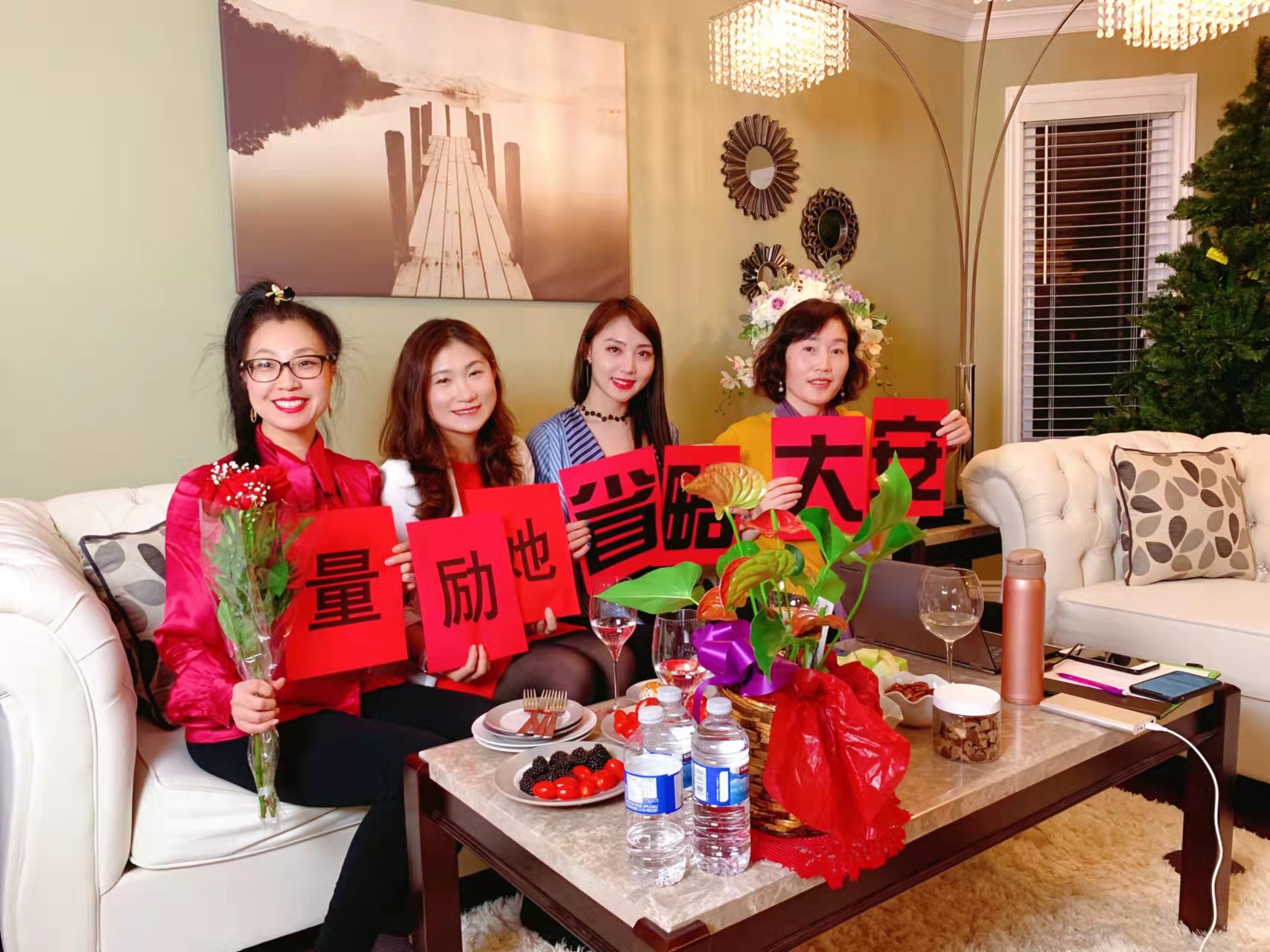 (她励量全球女性俱乐部三位联合创始人Anna Huang、Cindy Liu、Kerina Li和加拿大华联会牛华会长)