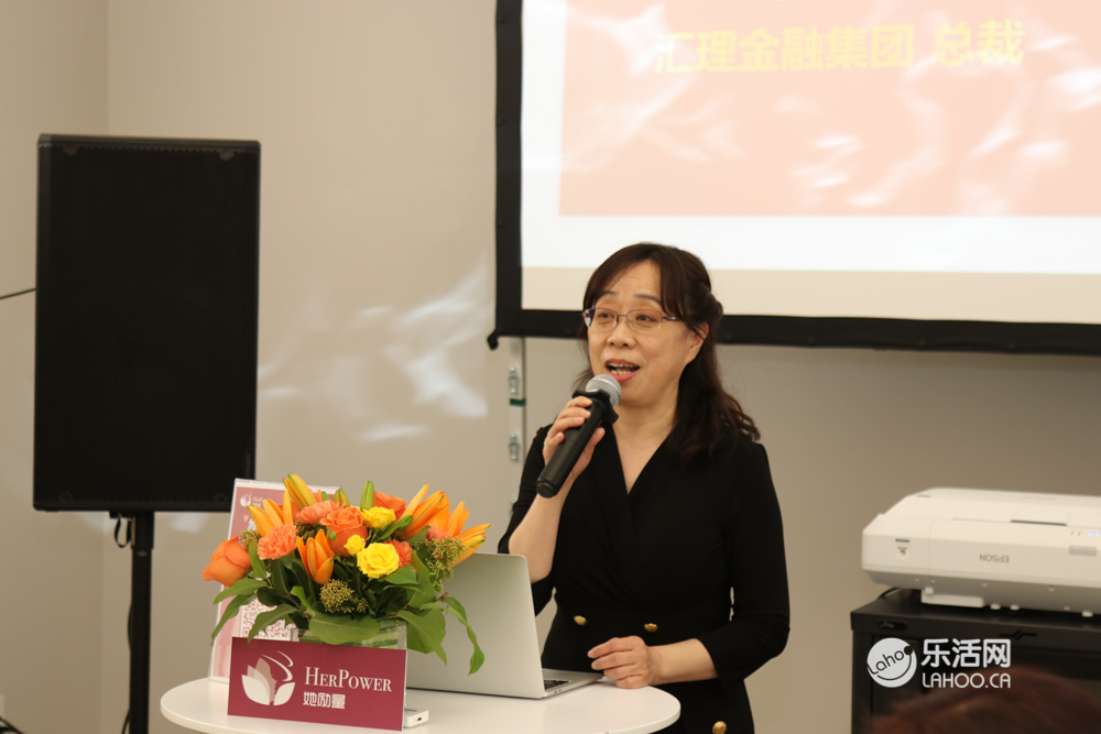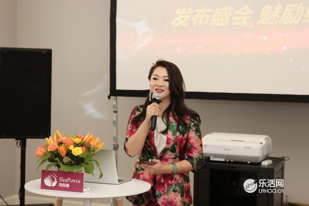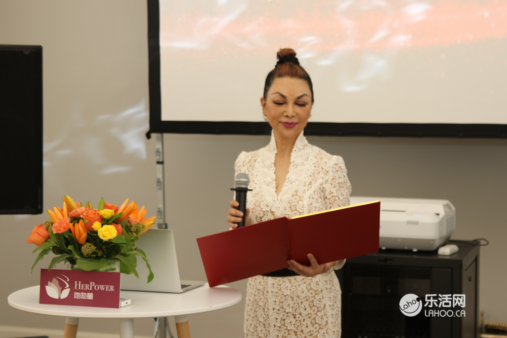 第二位邀请上台致辞的是汇理金融总裁Flora女士,她很感谢「她励量」俱乐部的邀请。她对大家说道自己移民20年,创业19年,作为汇理金融的联合创始人,在过去的19年里面,为加拿大和社会还有我们华人,她都在努力出一份力做了很多贡献,同时,她和公司也加入了很多慈善组织,力所能及的用自己的一点力量在这里去影响了很多人,不管是灾区的监管,还是对个人的帮助,还是在医院的基金捐款方面,她都觉得我们每个人都去尽了一份力就可以了,她认为各位在场的女性朋友们除了事业做得好,一定要做一个有善心有爱心的人,因为这个世界需要爱。