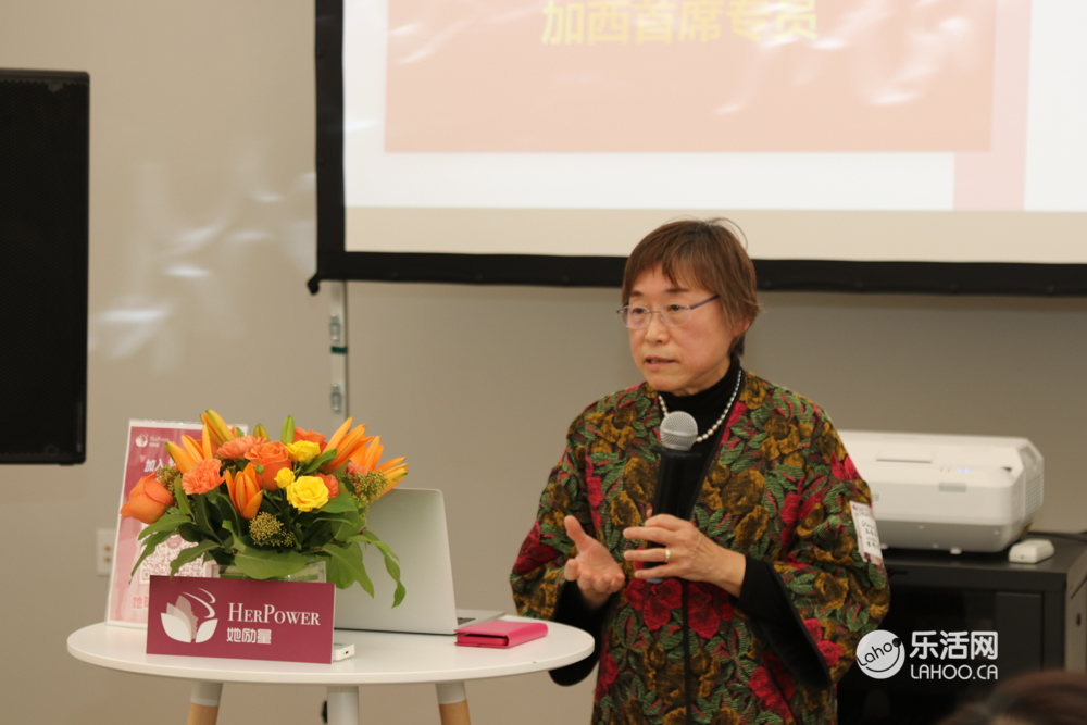 下一位邀请到香港特別行政区政府,驻多伦多经济贸易办事处,加西首席专员 袁黃洁玲女士为活动致辞,她首先感谢「她励量」俱乐部精心组织的活动。她表示“妇女是物质文明和精神文明的创造者,是推动社会发展和进步的重要力量。没有妇女,就没有人类,就没有社会”。作为现代女性压力非常大,「她励量」俱乐部这个平台非常的有意义,可以为身处在异乡的女性们抱团聚暖。