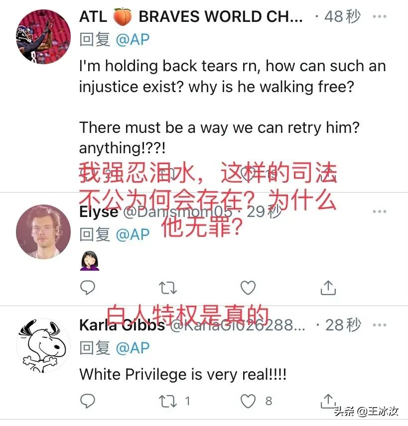 在推特上,有网友直接指出这是“白人特权”,还有人说”公道何在”?