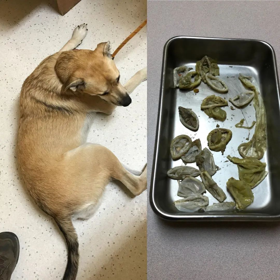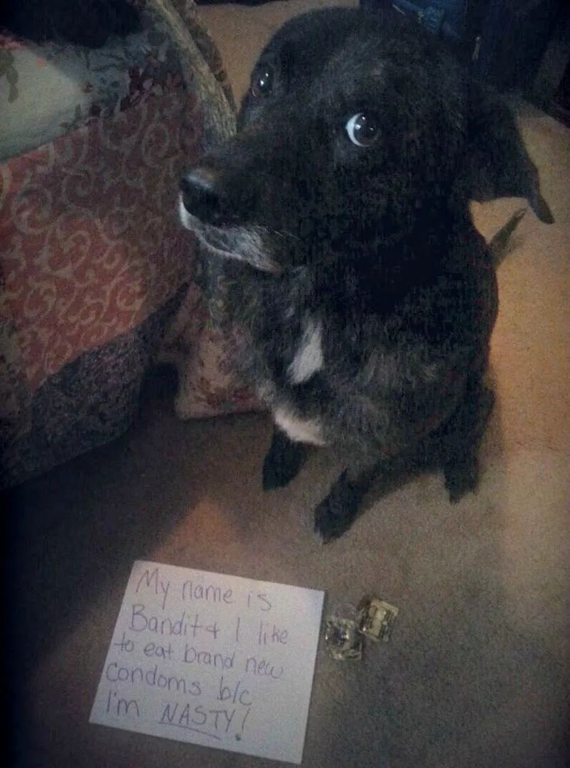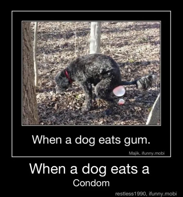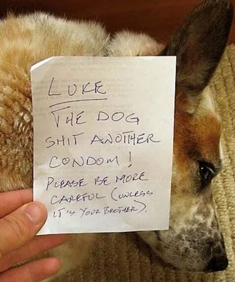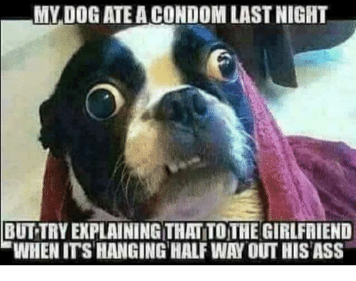 我的狗昨晚吃了个套套,我试着给女友解释,但一半的套套还挂在狗屁股上时