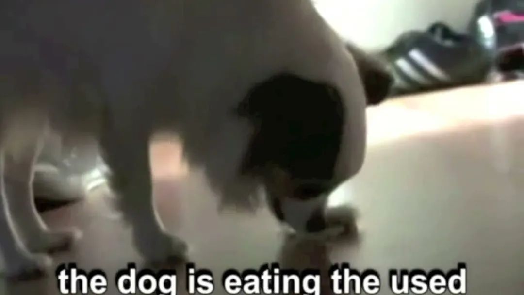 狗吃安全套,无疑是以另一种方式传达出了主人公的私密信息。