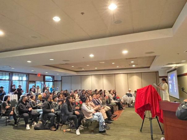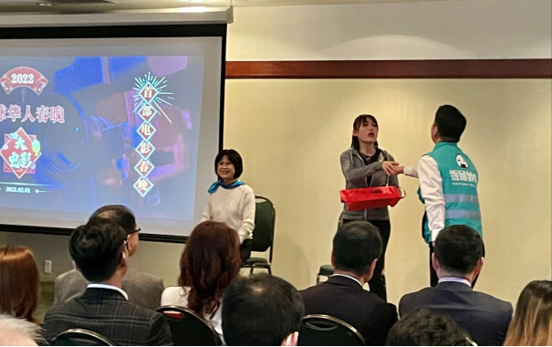 话剧团演员队长Selina介绍了到场的来宾、赞助商和各个媒体。她说道“我们为了感谢各位赞助商对春晚大电影的支持,有别于一般的活动流程,加拿大话剧团的演员们会在现场为来宾们演出4个以赞助商为背景来创作的短剧。只要同加拿大话剧团合作,我们就会给你带来不一样的惊喜。”