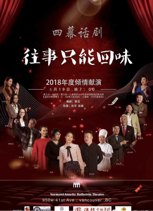 加拿大话剧团创立于2016年,是在联邦注册的非牟利机构,经过六年的发展壮大,现已成为拥有众多成员的专业表演团体机构。时至今日,加拿大话剧团成功演出了《华人之光》、《往事只能回味》、《我们这个院儿》三部精彩大戏。演出凭借贴近生活的内容和精彩的舞台表演在本地观众中产生了强烈的反响,也极大地丰富了本地观众的文化生活。