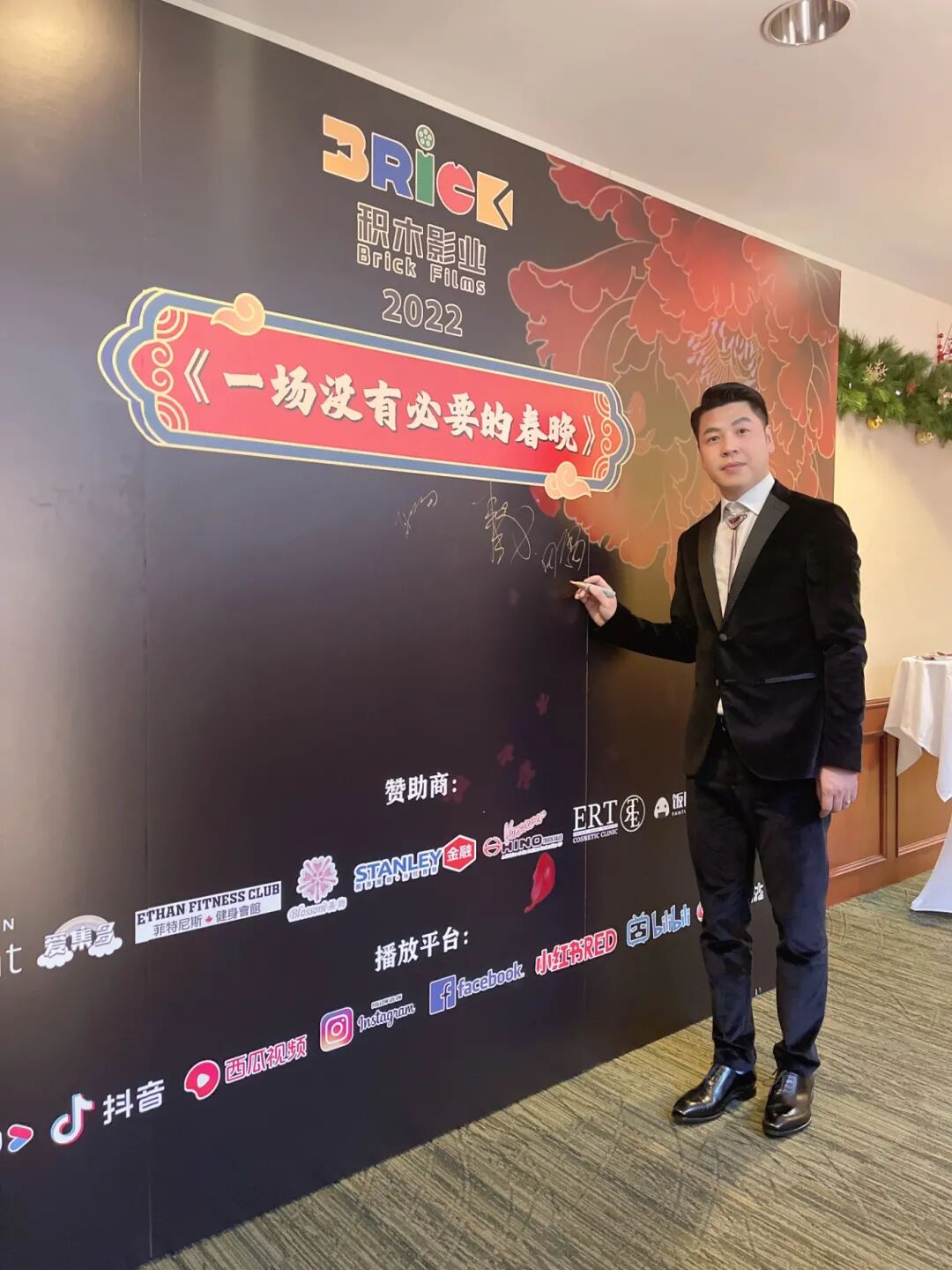 赞助商.BMO 银行、Kind 地产开发公司、ERT 医美连锁、. EFC 健身馆、大川家、 Hino、 维智娱乐、爱集多、.饭团外卖、stanleywang 金融、冷暖中医等纷纷登台表达了对《一场没有必要的春晚》电影的支持和期待。
