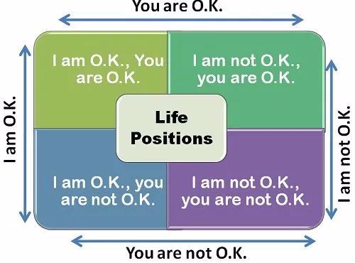 了解了这个,我们就可以有觉察的调节自己的心理坐标,尽量让自己定位在“我好,你好”的健康状态。