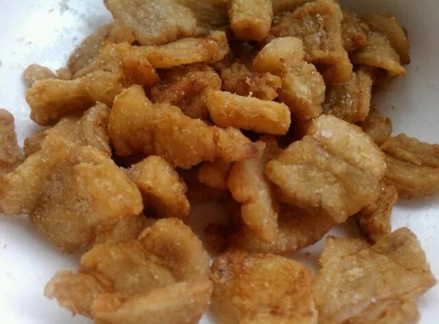 猪油渣制作简单,唯一难点可能在于没钱买食料,主要把猪的肥肉肥膘扔进锅里,火神执道,然后等,等待火与油与膘在锅里谈判,直到猪板油捐无可捐,再用笊篱捞起精疲力尽的固体,猪油渣就成了。