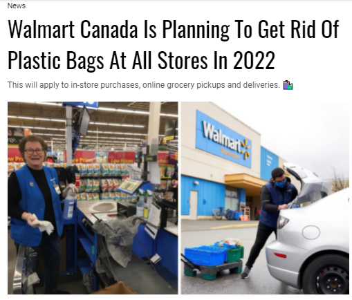 据Narcity报道,沃尔玛12月7日宣布,将采取分阶段的方式在其加拿大的400家门店中一步步淘汰所有一次性塑料购物袋。预计到明年的世界地球日(2022年4月22日前),沃尔玛全体门店将实现塑料袋的“清零”工作。