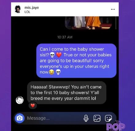 “我可以参加你的准妈妈派对吗?不管怀孕是真是假,你的宝宝会很美的!不好意思,每个人都在关注你怀孕的消息。”