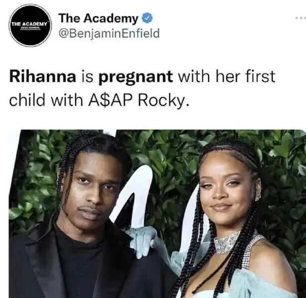 新闻报得有模有样,知情人说孩子是现男友A$AP Rocky的,蕾哈娜已怀孕多时。