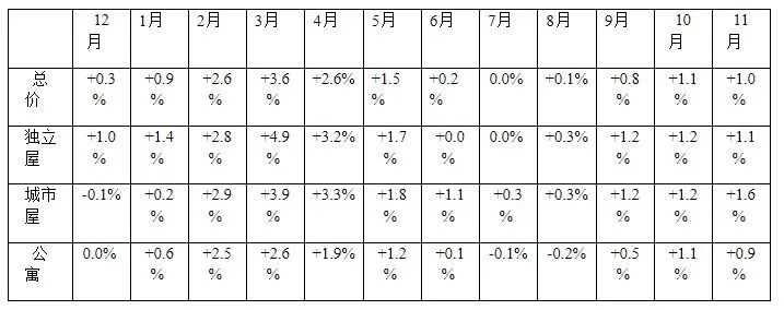 另一方面,11月份的市场上市总量大幅下行,从9月份的9,236套减少至10月份的8,034套,然后再减少至11月份的7,144套,接近历史最低位。房源存量的大幅减少,供求关系的更加紧张,给市场价格的攀升带来了巨大的推动力,毕竟,供求关系决定市场价格,这是铁打的市场规律。