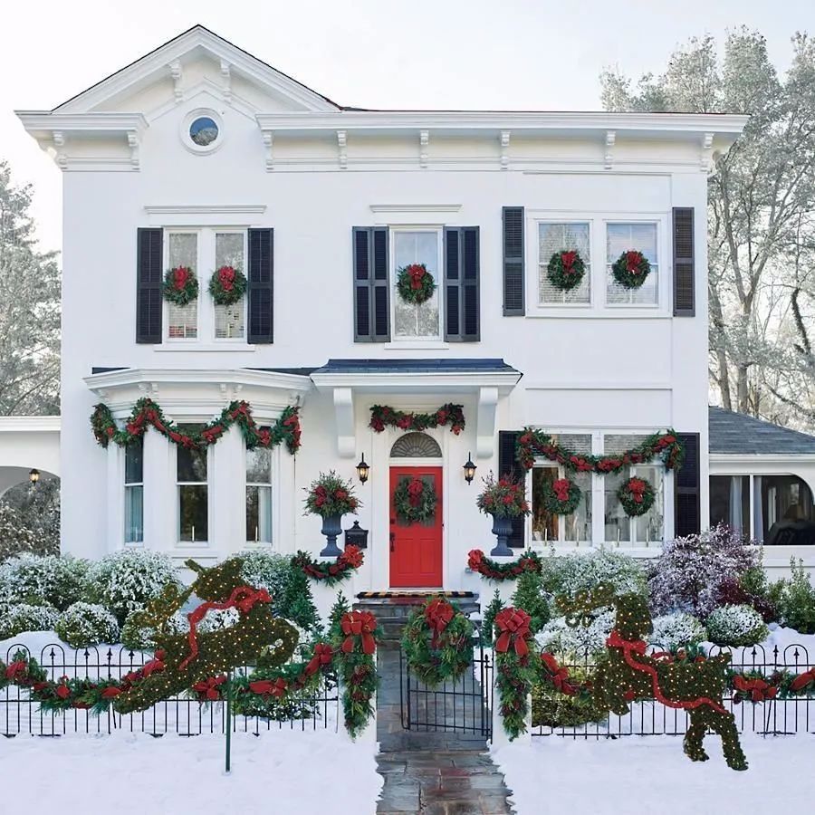 室内的装饰是给自己看的,室外的装饰则是给邻居、路人看的。而且,室外的装饰一般是自带灯光的,比如带灯光的雪人、圣诞老人、麋鹿等等,对整体节日氛围的提升更大。