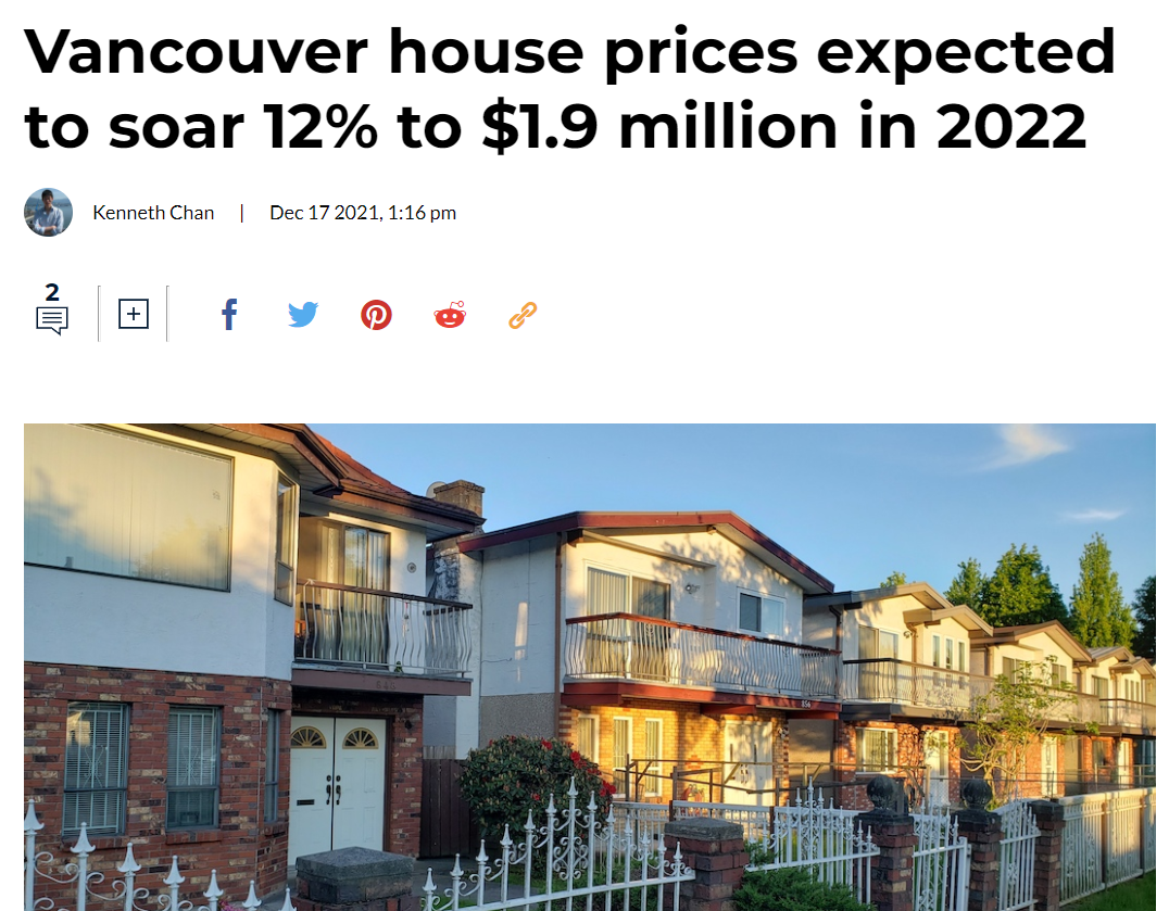 那么,房地产市场,不可避免地会受到冲击。在Omicron之前,各大机构都认为2022年大温独立屋涨幅会明显放缓,中位数价格涨幅不会超过5%,然而Omicron让避疫、居家办公的需求又回来了,那么……