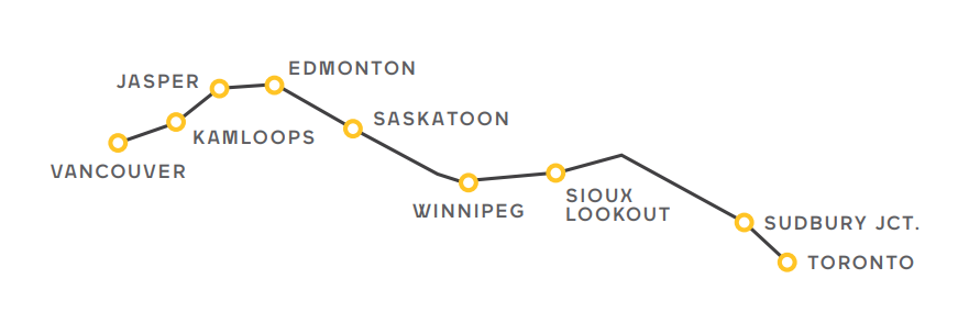 VIA Rail加拿大国铁线路覆盖加拿大主要城镇及一些偏远社区,其中最为出名的要数往返于温哥华与多伦多之间的“加拿大人号”。这条连接加拿大东西部两座最大城市的线路,被视为加拿大标志性的行程,加拿大人号还被印在了2013年版的$10加币上。