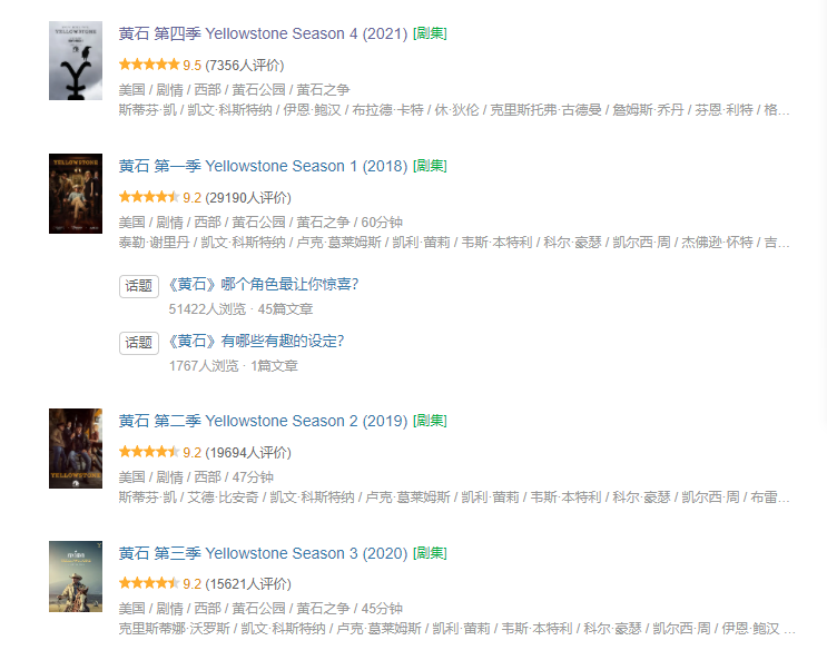 开场10分钟封神,豆瓣前三季评分均在9.2分,第四季曾一度飙到9.7分,烂番茄观众好评率93%,它就是美剧——《黄石》第4季。如果用一句话来形容《黄石》,这句再精准不过:“它是真实版《西部世界》、牛仔版《教父》、西部版《纸牌屋》、蒙大拿州《权力的游戏》。”