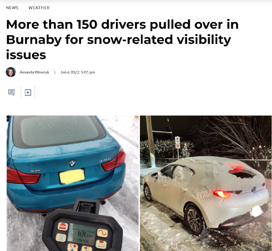 据Daily Hive援引本拿比皇家骑警消息,在1月6日长达3小时的“闪电战”中,本拿比警方共计拦下了超过150辆车,这些车主无一例外,全都没跟雪搞好关系。